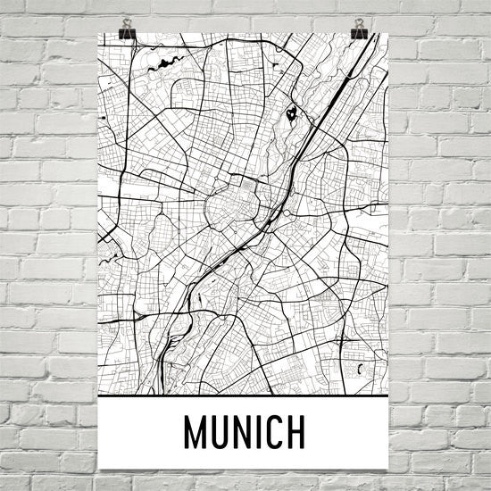Munich Germany Street Map Poster Wall Print by Modern Map Art